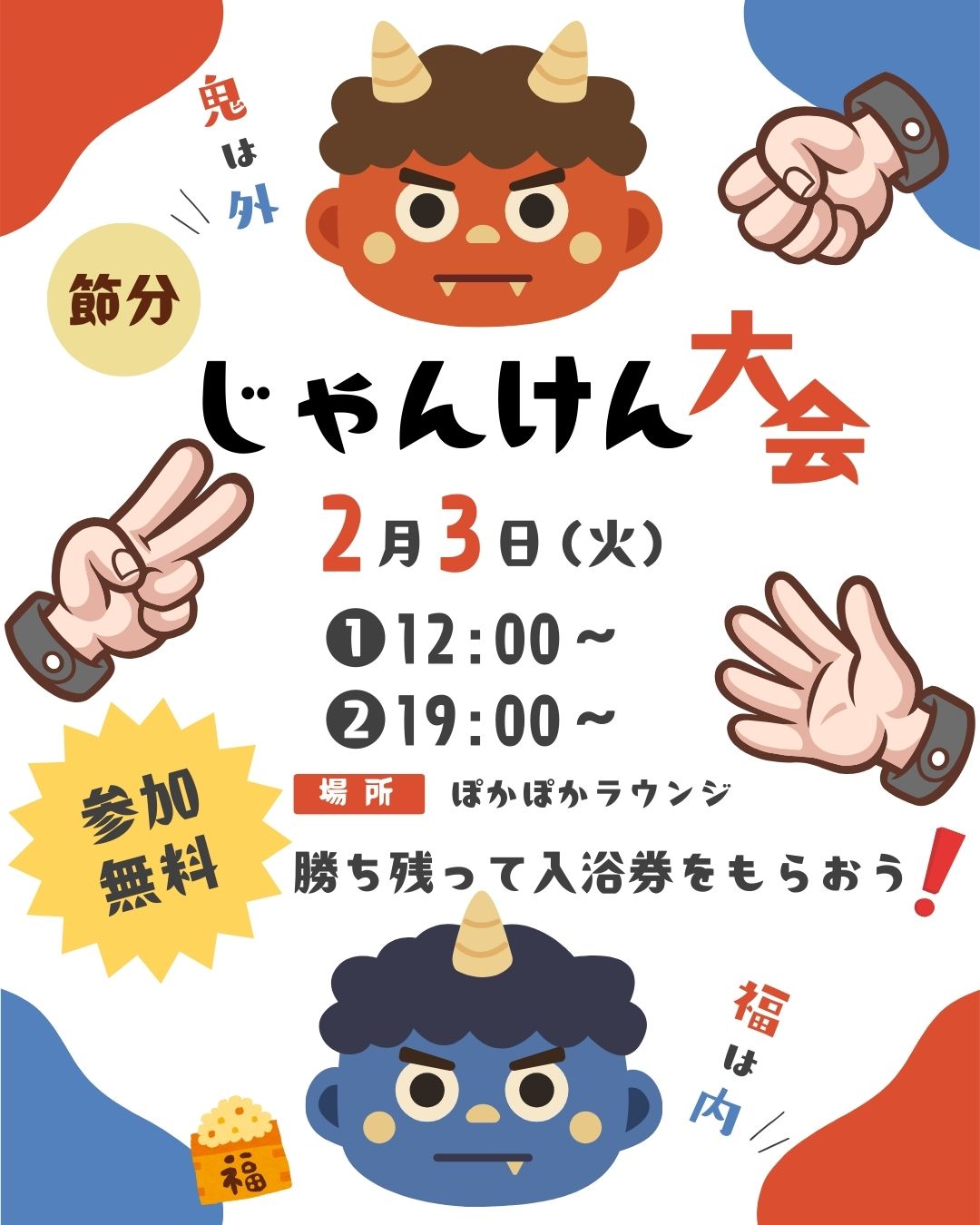 12月に開催したクリスマスじゃんけん大会がご好評いただきまして、節分に開催することになりました😄🎶🎶